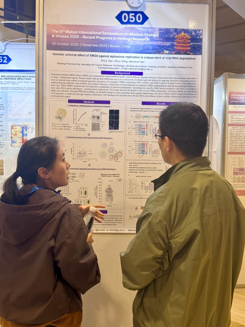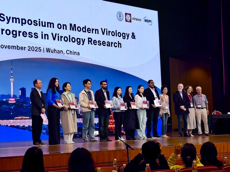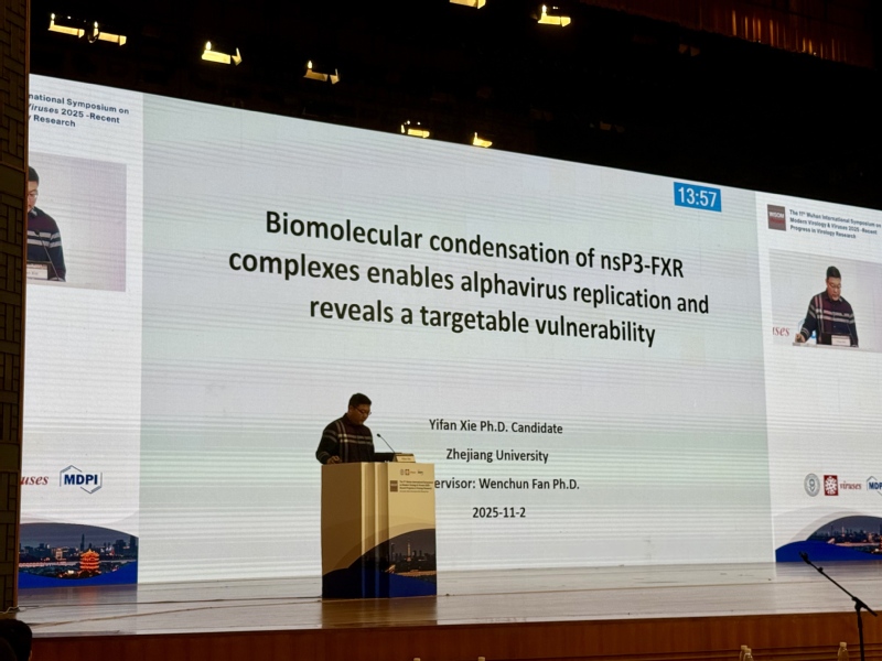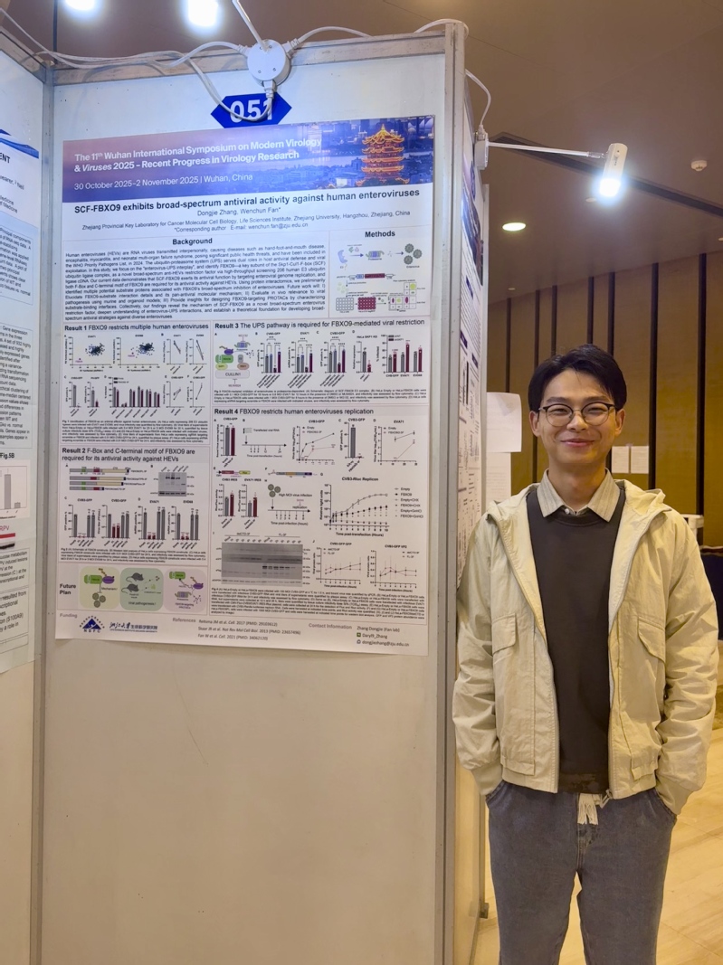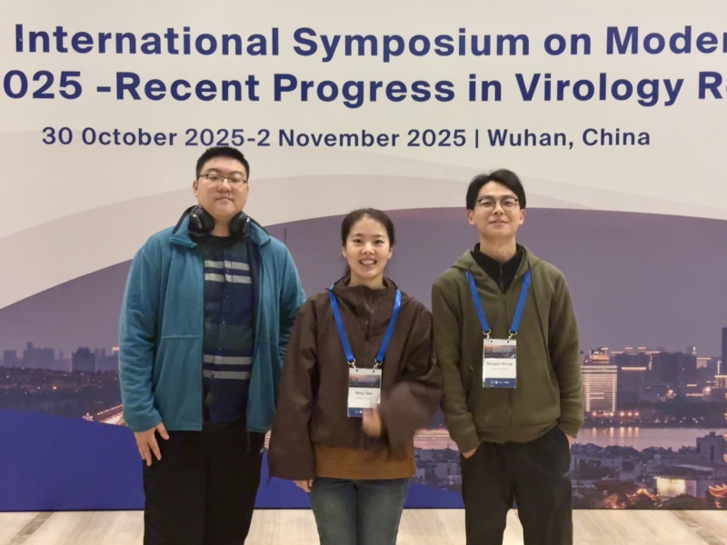 2025年10月 甘淑仪(Poster presentation)、谢逸凡(Selected oral presentation)和张东杰(Poster presentation,获最佳海报奖)同学参加第十一届武汉现代病毒学国际研讨会,武汉 2025.10.31-11.2