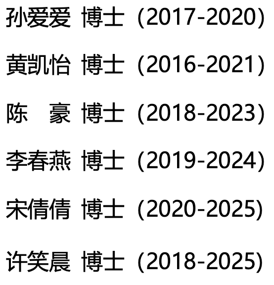 2024级博士生 包心悦 本科毕业于浙江大学 | 2025级博士生 李文菲 本科毕业于西北大学 | 2025级博士生 刘燕 本科毕业于中南林业科技大学 硕士毕业于华南理工大学 |